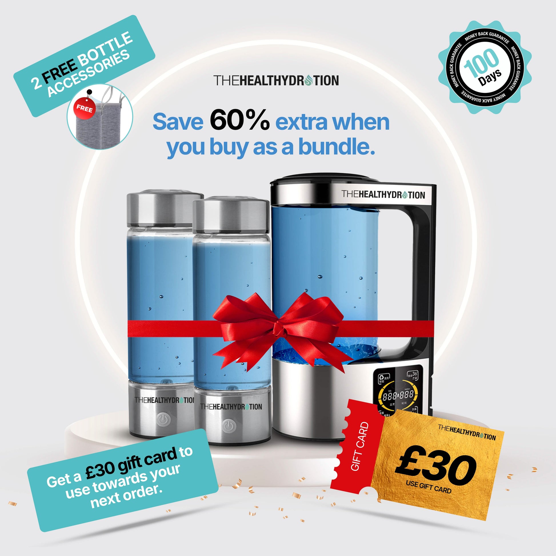 Many people find from our bottle, hydration levels higher than normal from a smaller volume of water and this is due to the increased absorption with the highest bioavailable antioxidant being molecular hydrogen